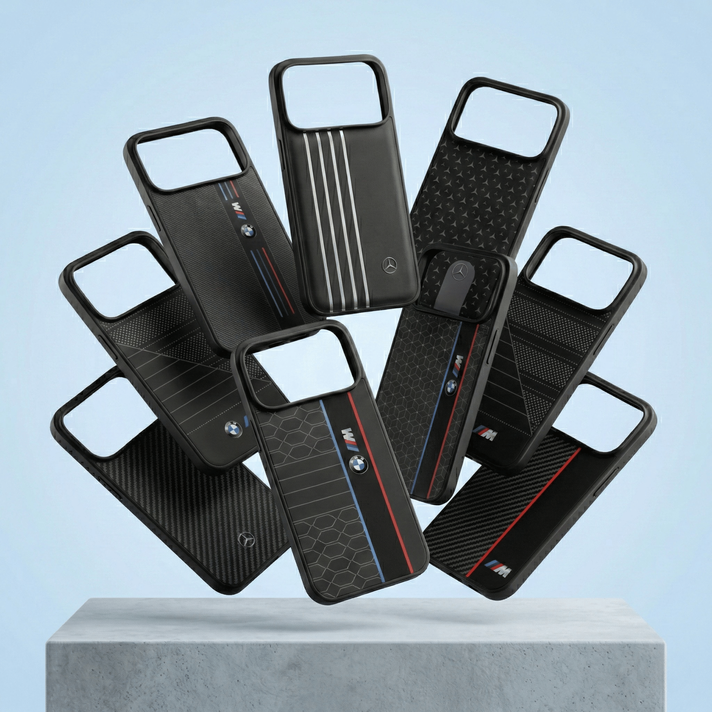 | Design | BMW Carbon Stripe 01, BMW Carbon Emblem 02, BMW Dot Matrix M 03, BMW Hexa Line 04, BMW Dual Texture M 05, BMW Diagonal Carbon M 06, BMW Redline Carbon M 07, Mercedes Classic Stripe 08, Mercedes Pattern Shield 09, Mercedes Carbon Badge 10 |