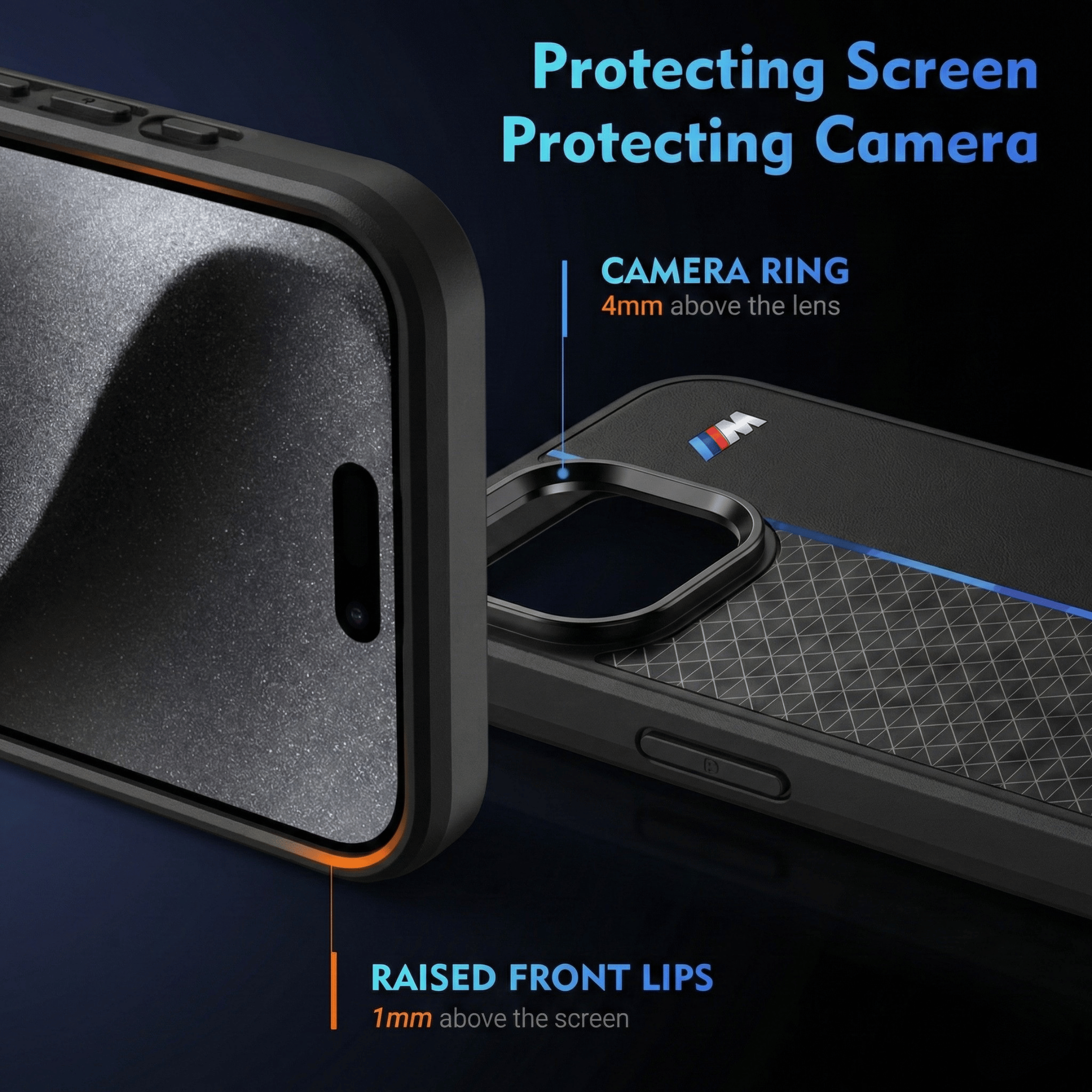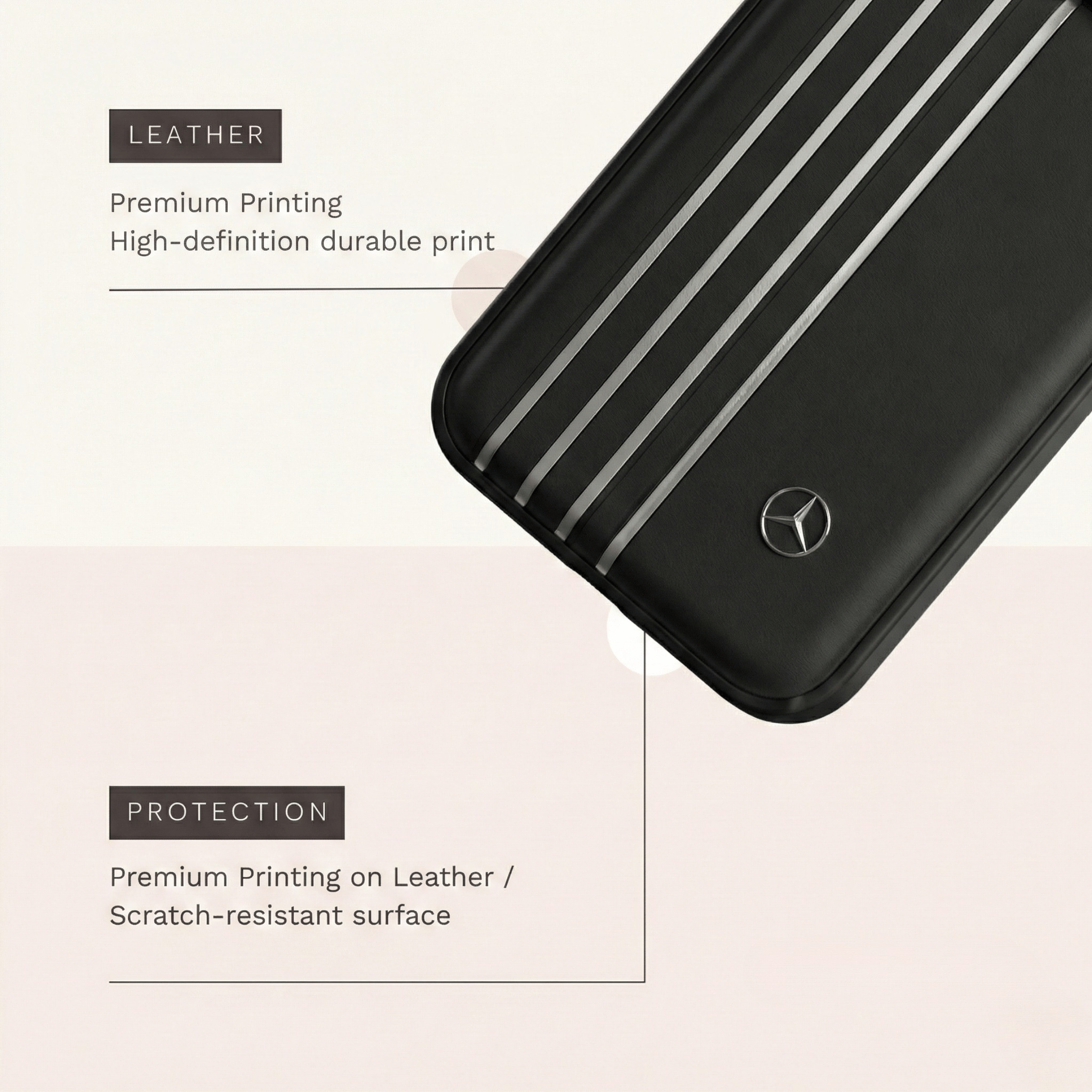 Precision printed automotive-inspired design with layered protection and premium leather finish.
