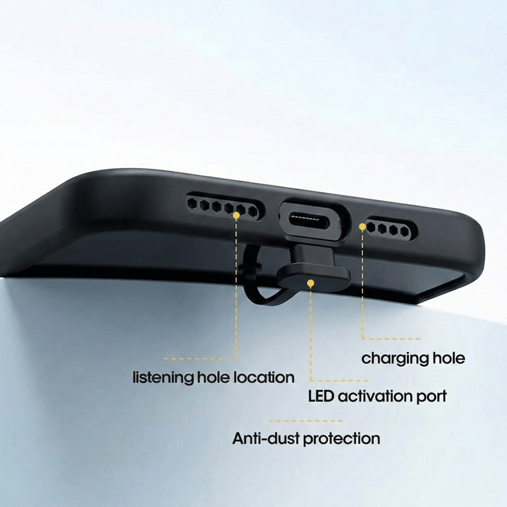 • Listening hole and LED activation port placement