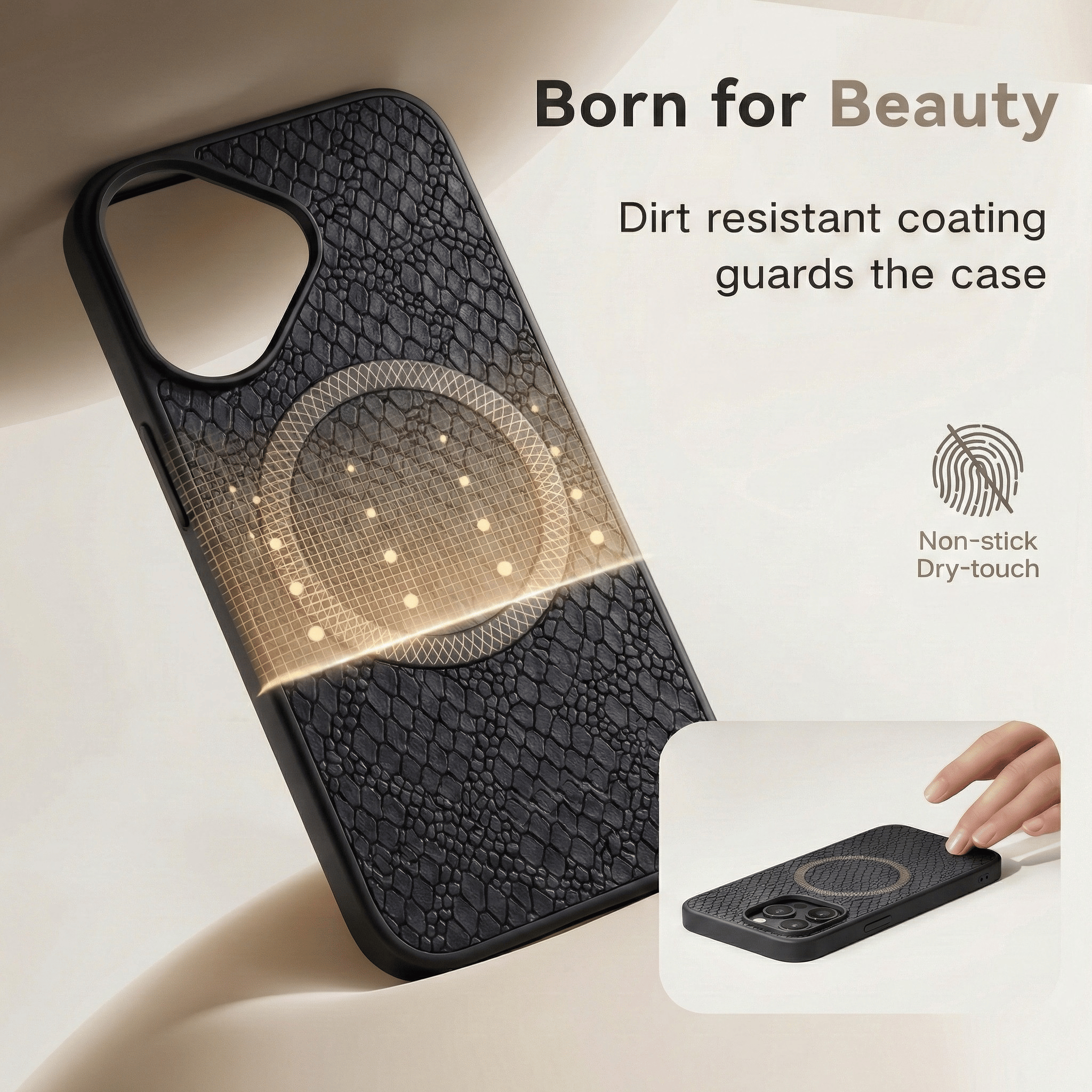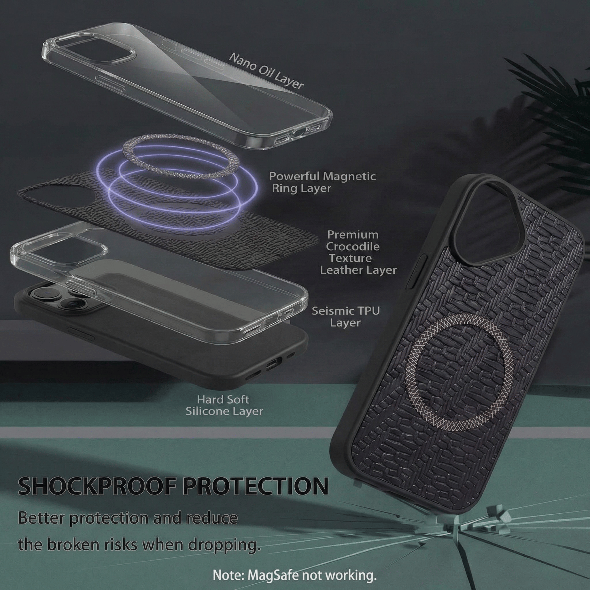 • Premium crocodile leather texture layer